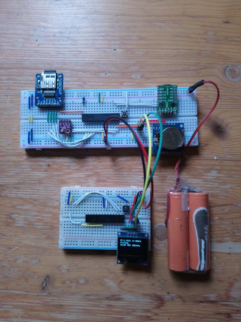 - Atmega 328 Datenlogger: mit Bosch Sensortec BME280, RTC Clock und Sd-Card - Modul. Zur Stromversorgung und zum Laden des Programms benutze ich hier einen TTL to USB-Serial Adapter.