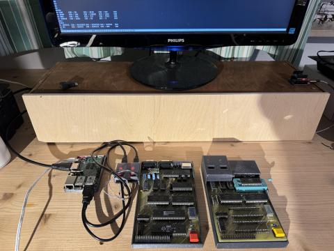 vor ein paar Tagen, jetzt im Dezember 2023 meldete sich jemand bei mir, er habe meine Schaltung nachgebaut und sie bisher nie in Betrieb nehmen können. Grlücklicherweise habe ich daran immer weiter gearbeitet und das CP/M auf 15 virtuelle Diskettenlaufwerke aufgebohrt und so konnten wir den neuen Stand gleich bei ihm testen. Hier ein kleiner Text und Bild vom Nachbau: